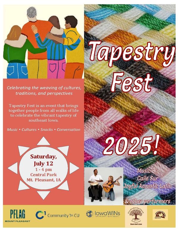Tapestry Fest 2025 was a big success weaving together food, music, and entertainment from around the world. A celebration of cultures in Henry County. 2025 Live music from Calle Sur and local artists. Cultural representatives and snack samples from: African American, Argentina, Brazil Chile, El Salvador, Guatemala, Haiti, India, Mexico, Nepal, Philippines, South Africa, Sweden, Ukraine, Venezuela!